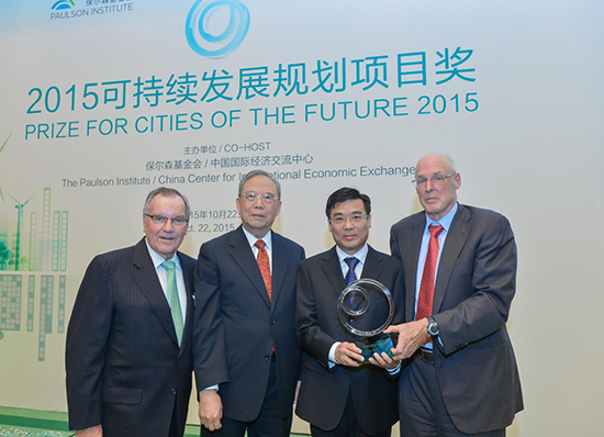 北京市副市长林克庆接受曾培炎*生和保尔森*生颁发“可持续发展规划项目奖”